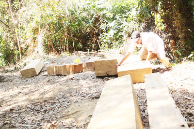 | Investigative reporter of Khanh Hoa Online on the scene of a deforestation case |