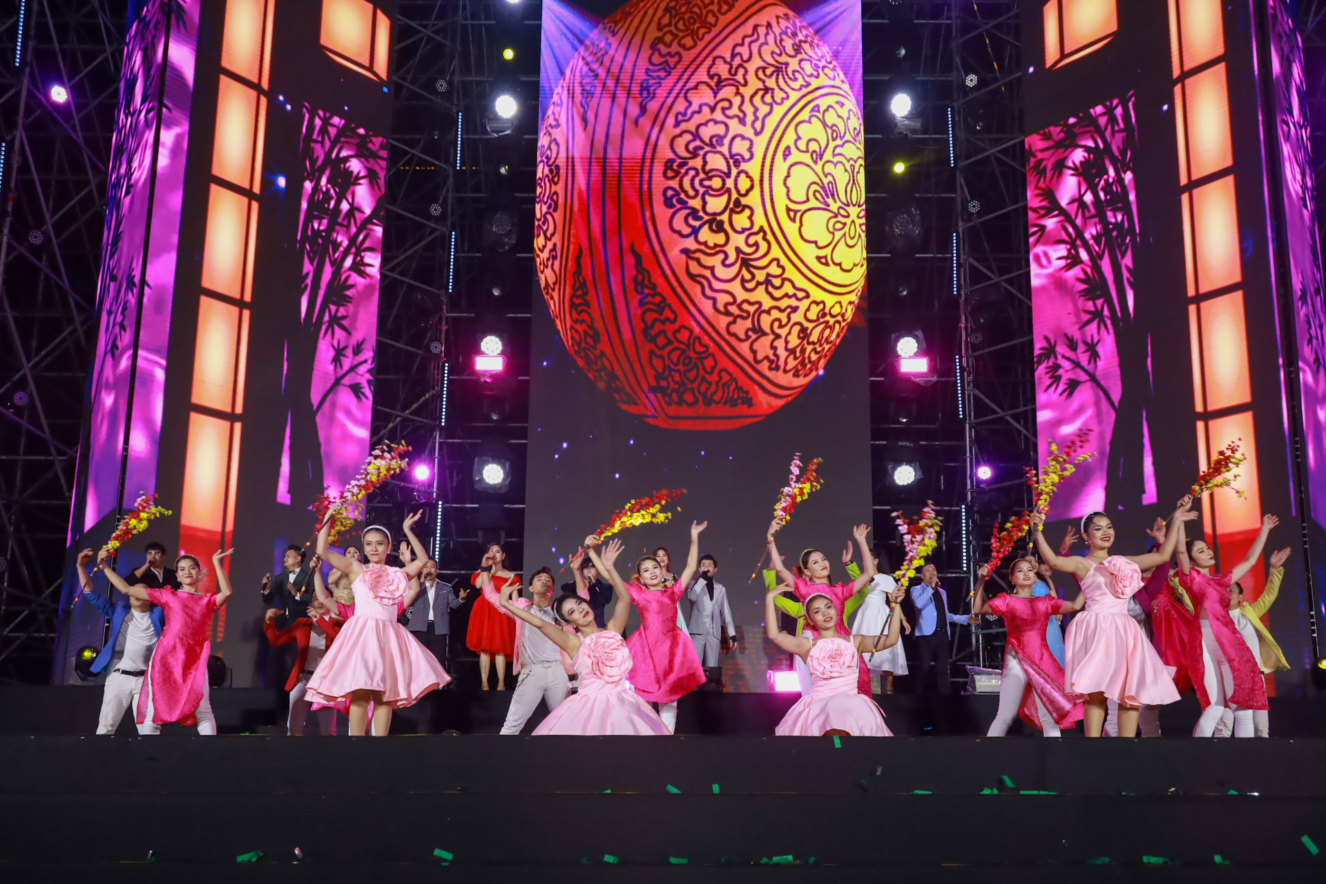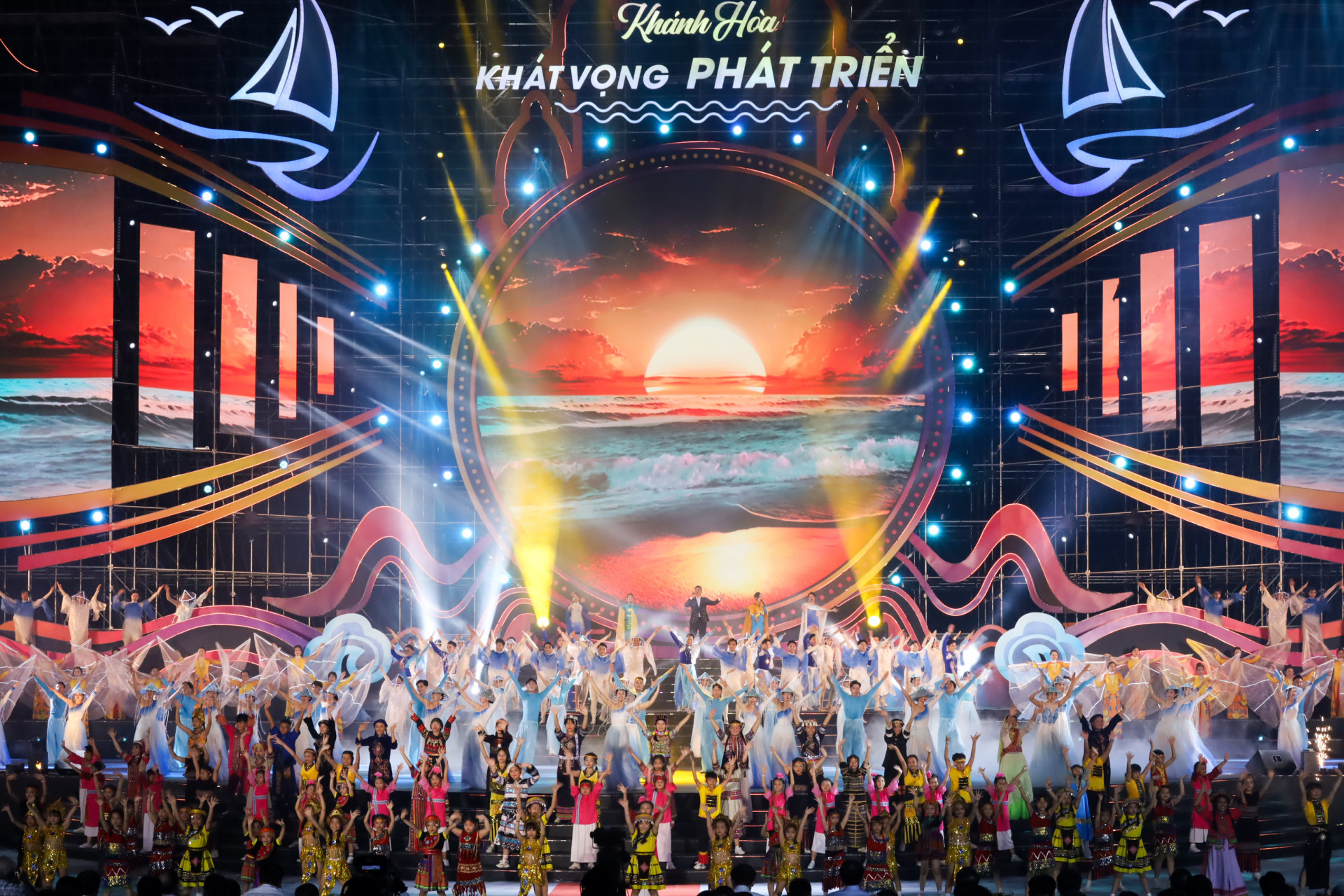 | The artists posing for photos with Khanh Hoa Province’s leaders and audience |