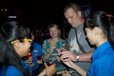 | Foreign tourists join the meaningful event. |