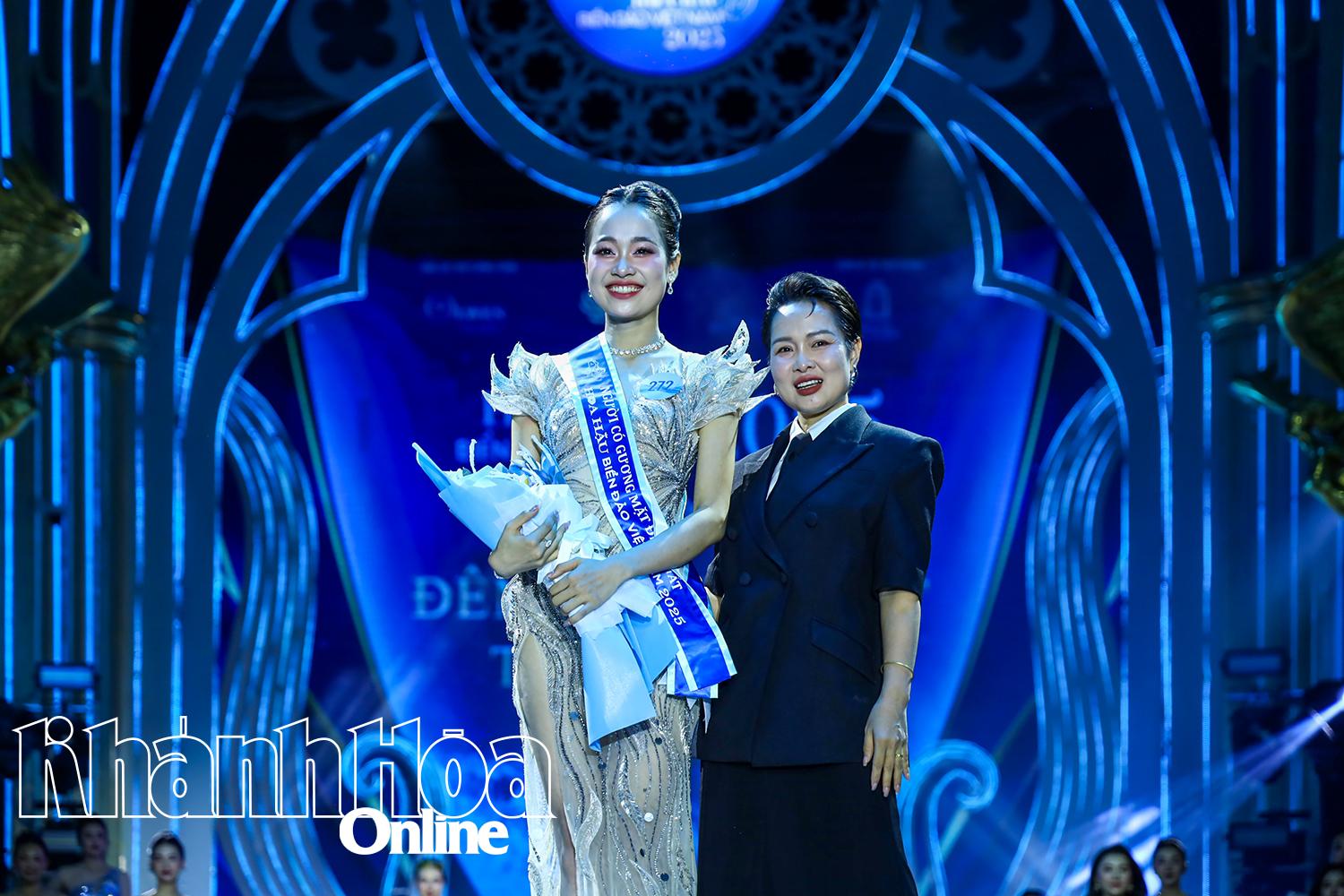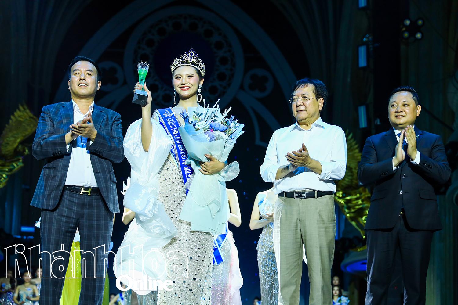 | Standing Vice-Chairman of Khanh Hoa People's Committee Le Huu Hoang and representatives of the organizing committee crowning Nguyen Thi My Linh |