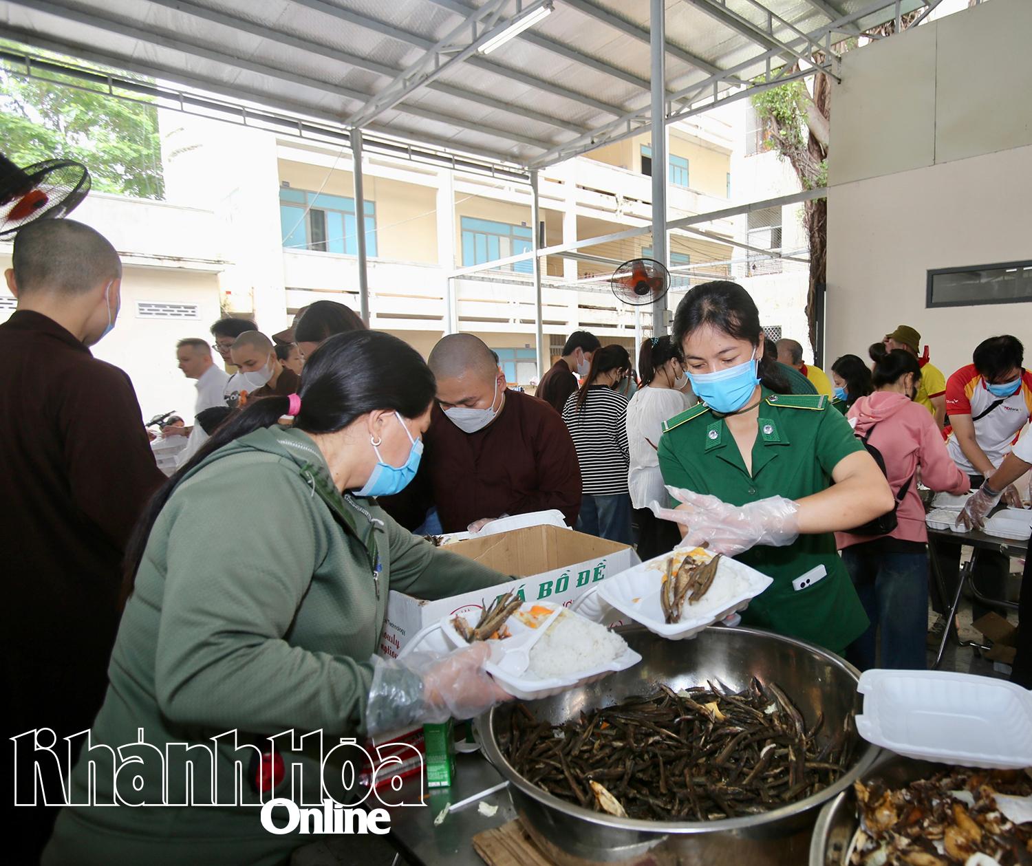 Responding to Ho Chi Minh City's relief appeal to support Khanh Hoa Province in overcoming the consequences of the recent flooding, the Social Charity Board of Ho Chi Minh City Buddhist Sangha in association with Ho Chi Minh City youth volunteer force organizes field kitchens to provide meals for people in the flooded areas.
