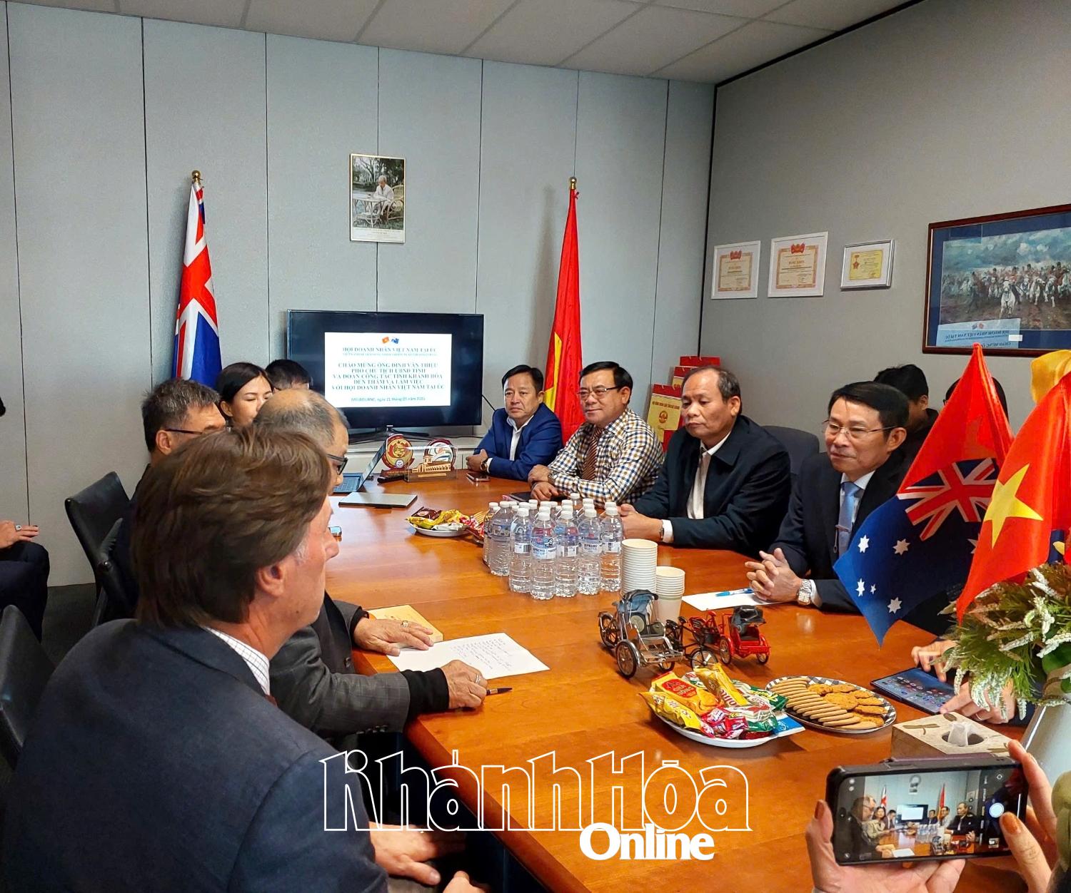 | Khanh Hoa provincial delegation works with the Vietnam Business Association in Australia at the headquarters of the Australia -Vietnam Investment Promotion Center. |