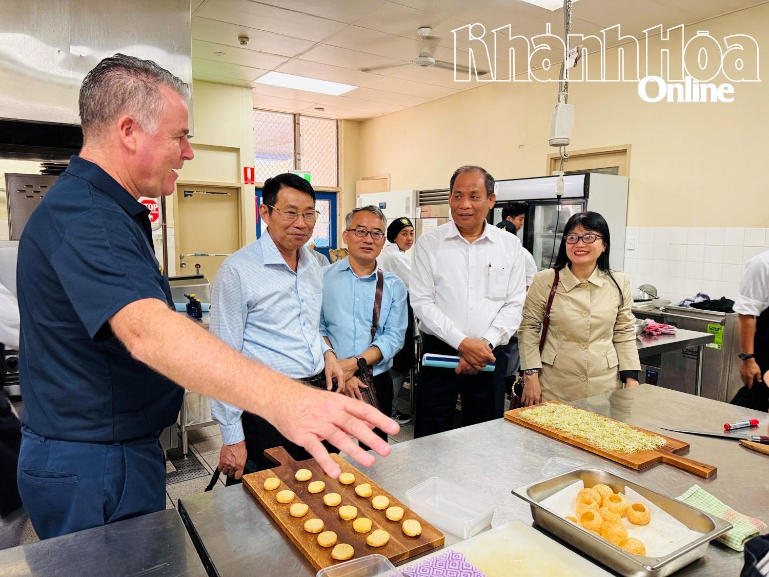 | Khanh Hoa provincial delegation visits the International College of Advanced Education's baking training facility. |