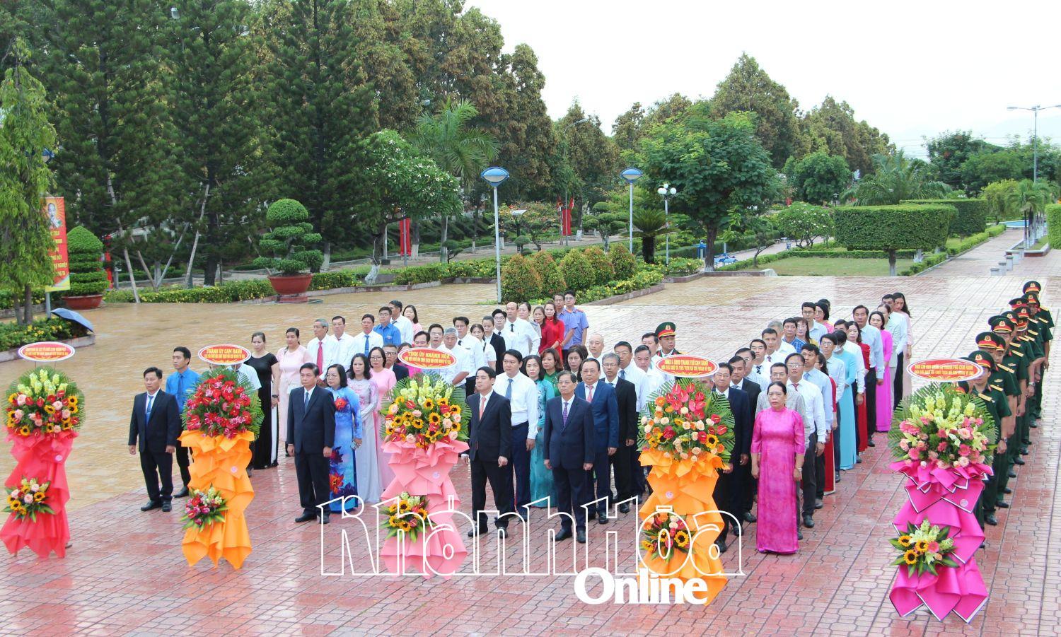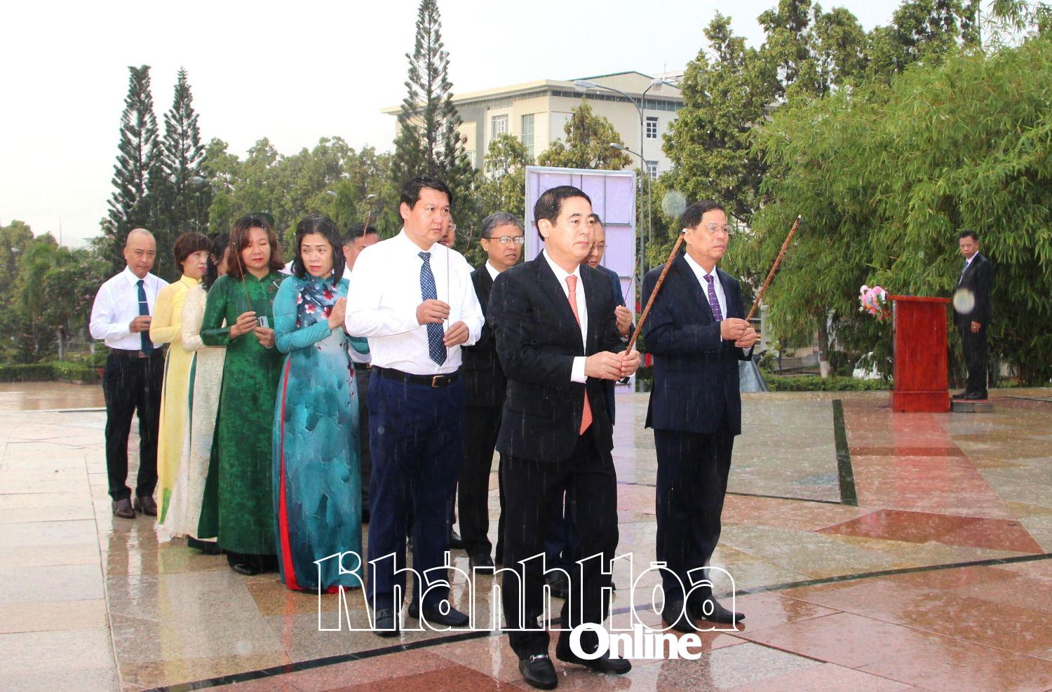 | The delegation of the Provincial Party Committee, People's Council, People's Committee, and Fatherland Front Committee led by Secretary of the Provincial Party Committee Nghiem Xuan Thanh offers flowers and incense at Uncle Ho's Monument. |