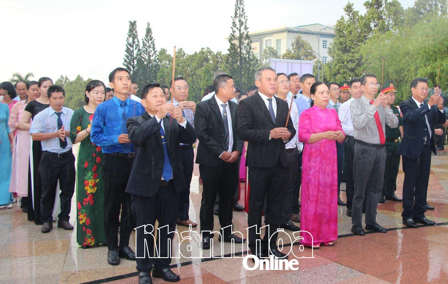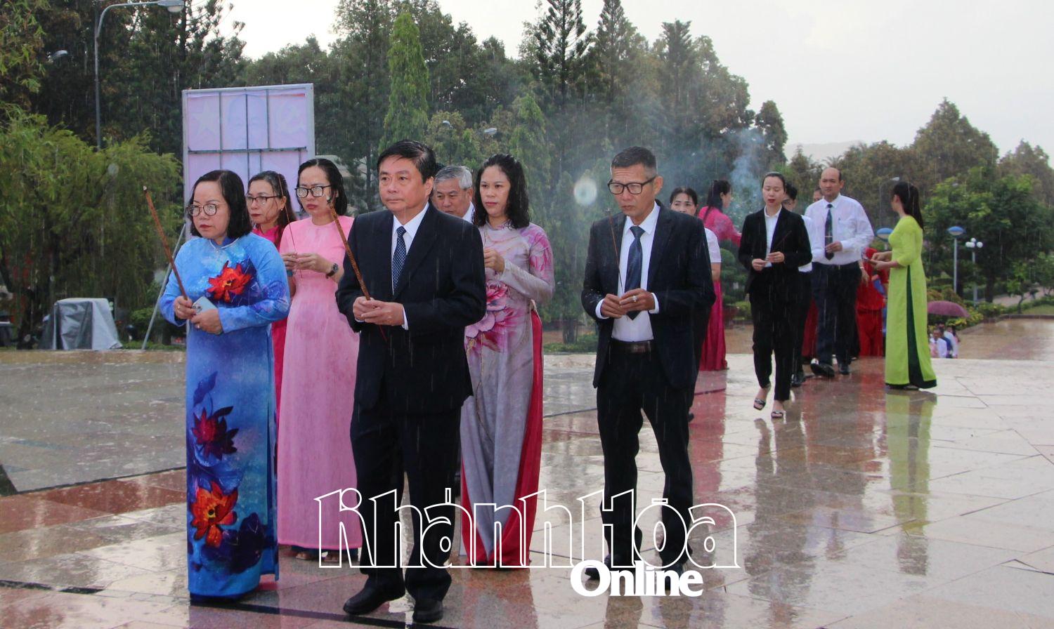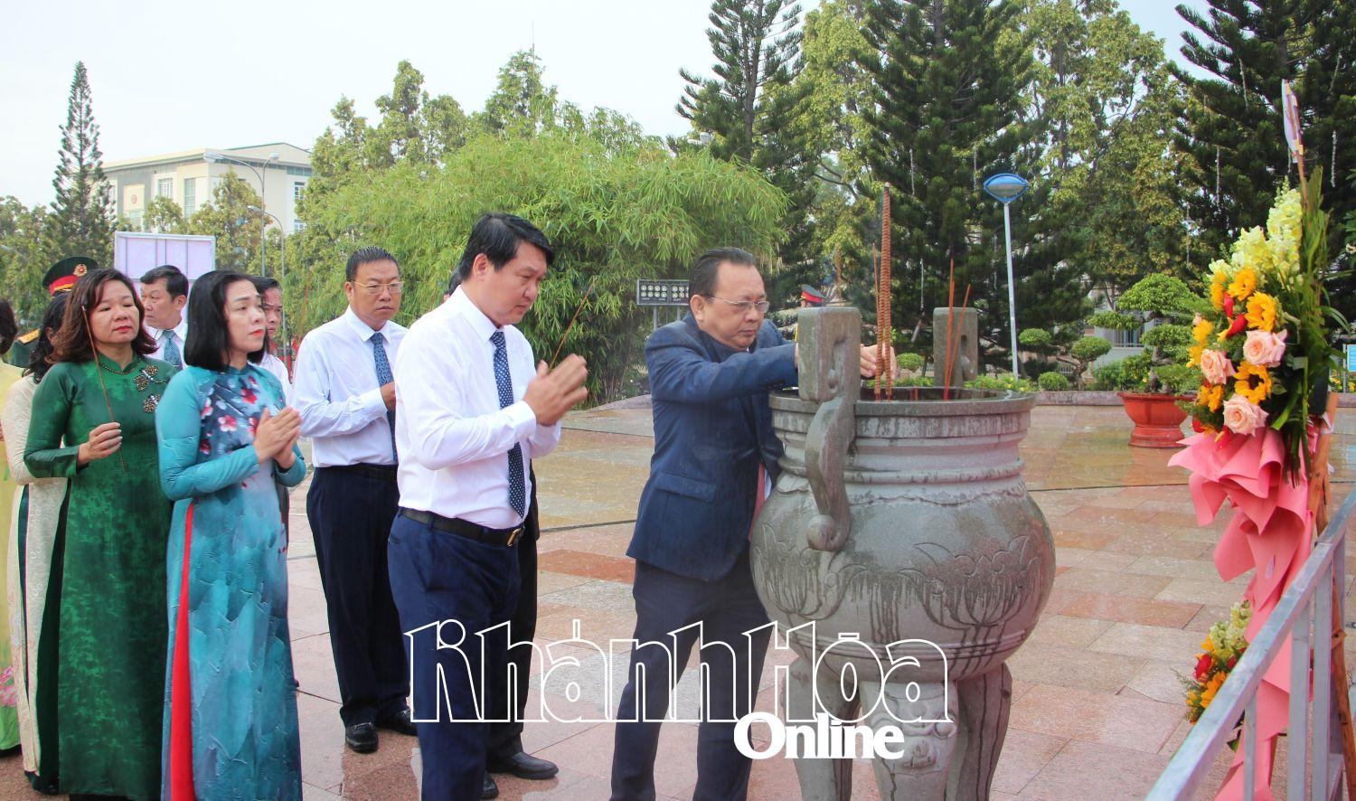 | Leaders of Cam Ranh City Party Committee offer incense to commemorate Uncle Ho. |