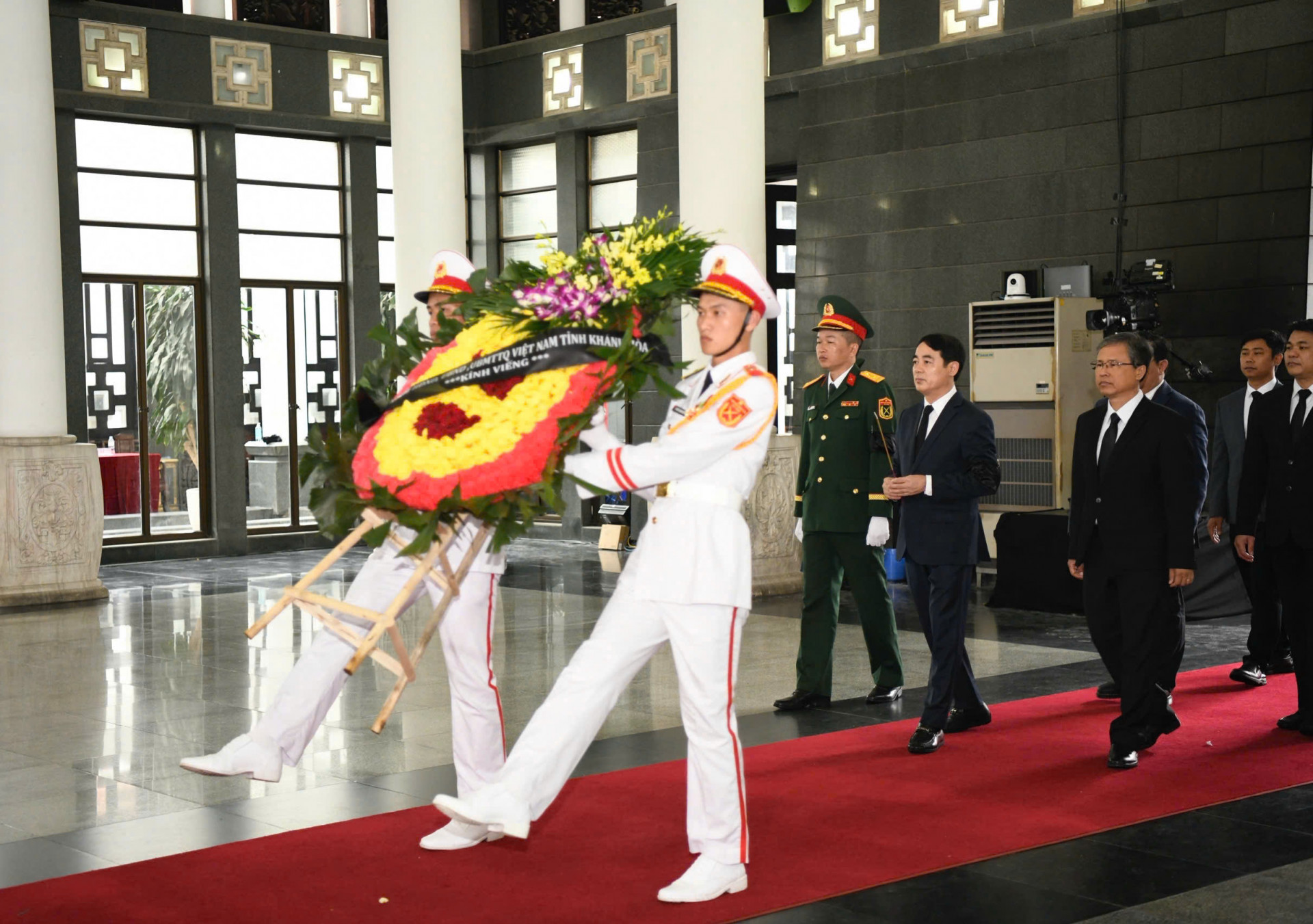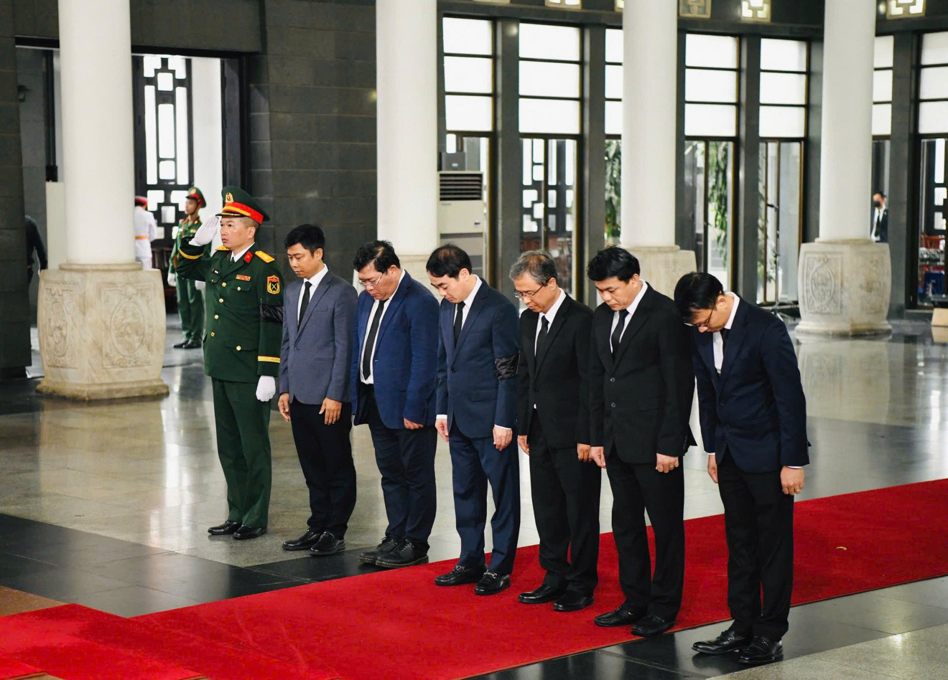 | Provincial Party Secretary Nghiem Xuan Thanh, Vice-Chairman of the Provincial People's Committee Tran Hoa Nam and leaders of several departments and agencies of Khanh Hoa Province at the National Funeral Hall. |