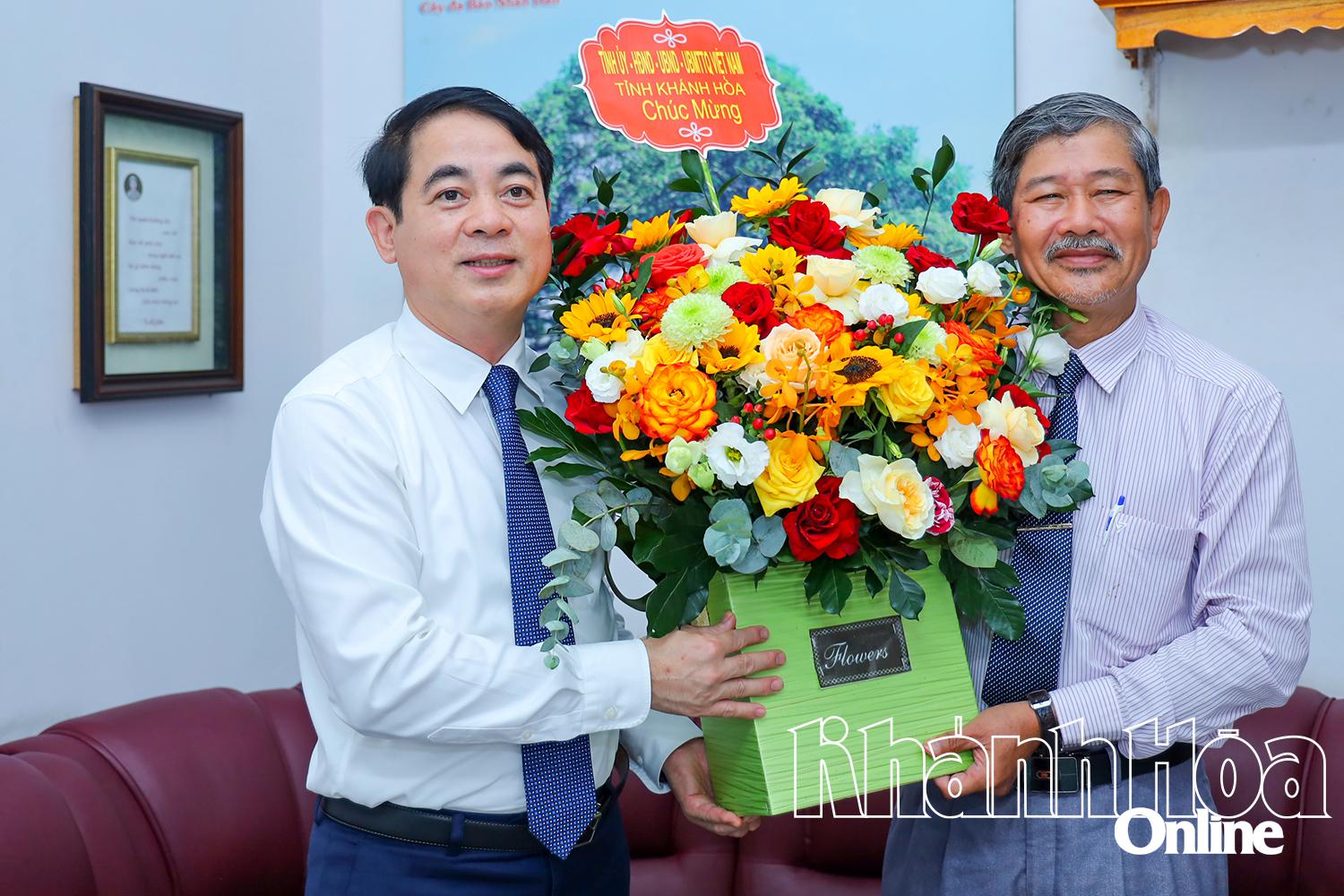 | Permanent Deputy Secretary of Provincial Party Committee Nguyen Khac Toan offers greeting flowers to Nha Trang Magazine. |