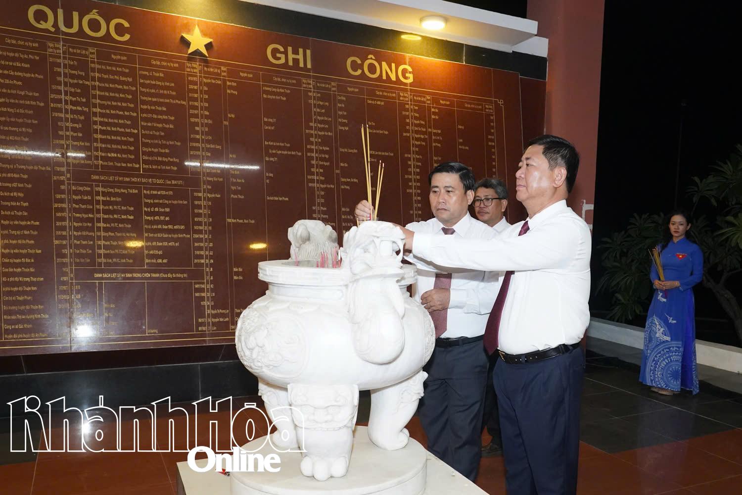 | Tran Quoc Nam, Chairman of the Provincial People’s Committee, and Lam Dong, Head of the provincial Party Committee’s Commission of Mass Mobilization and Propaganda offer incense at the memorial to honor heroic martyrs. |