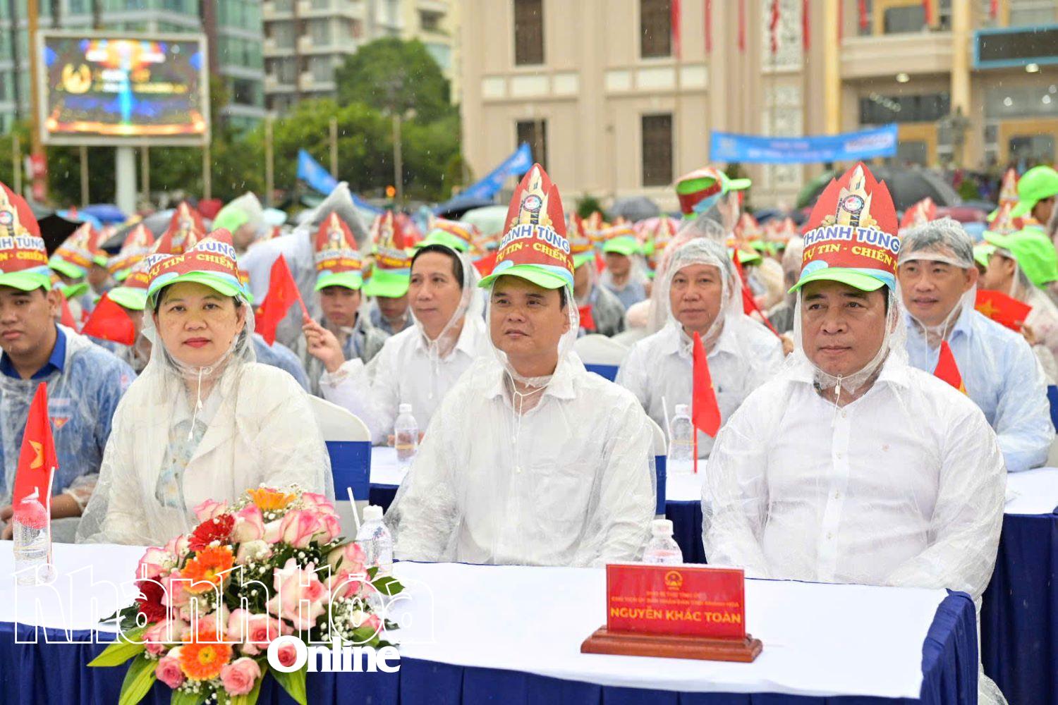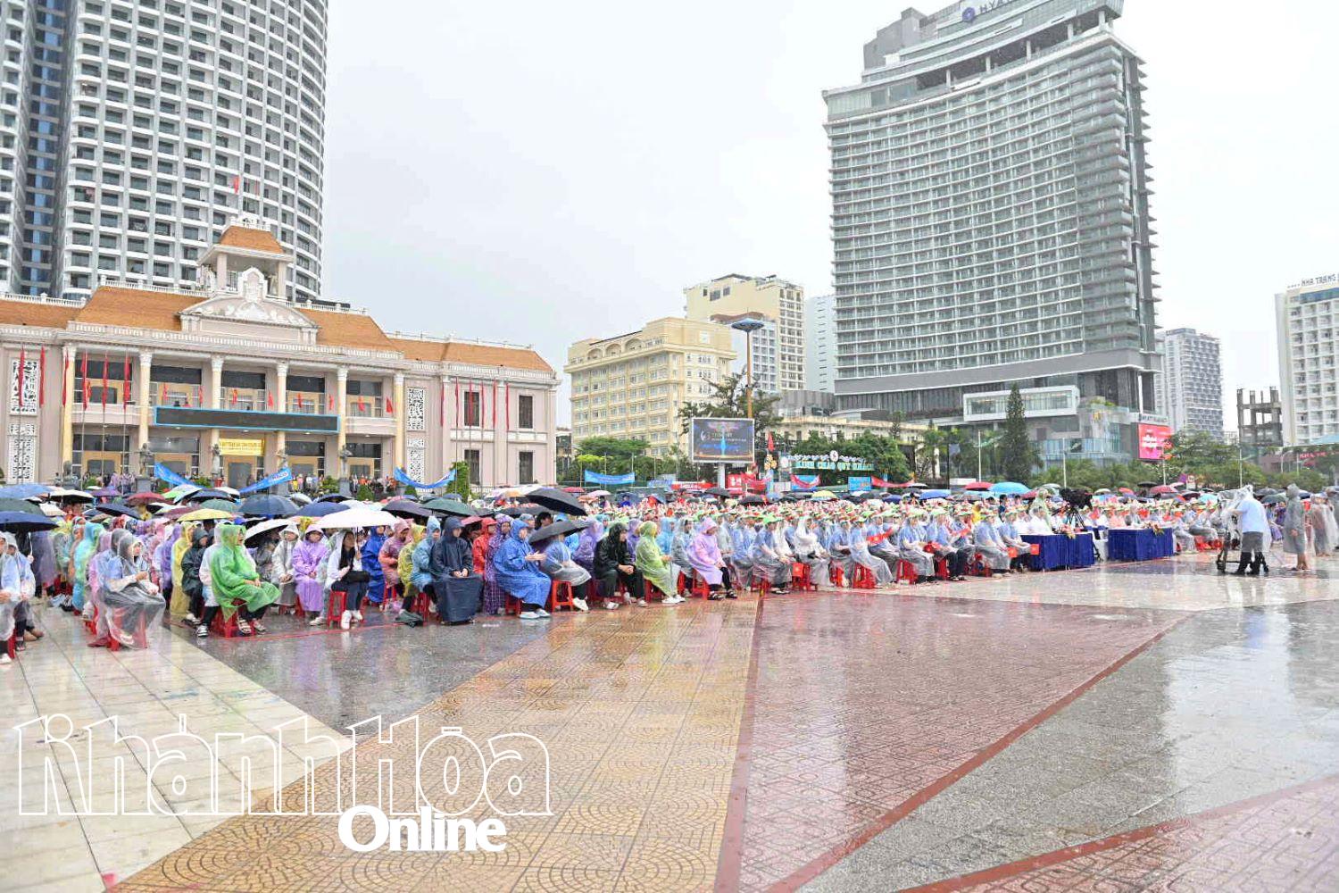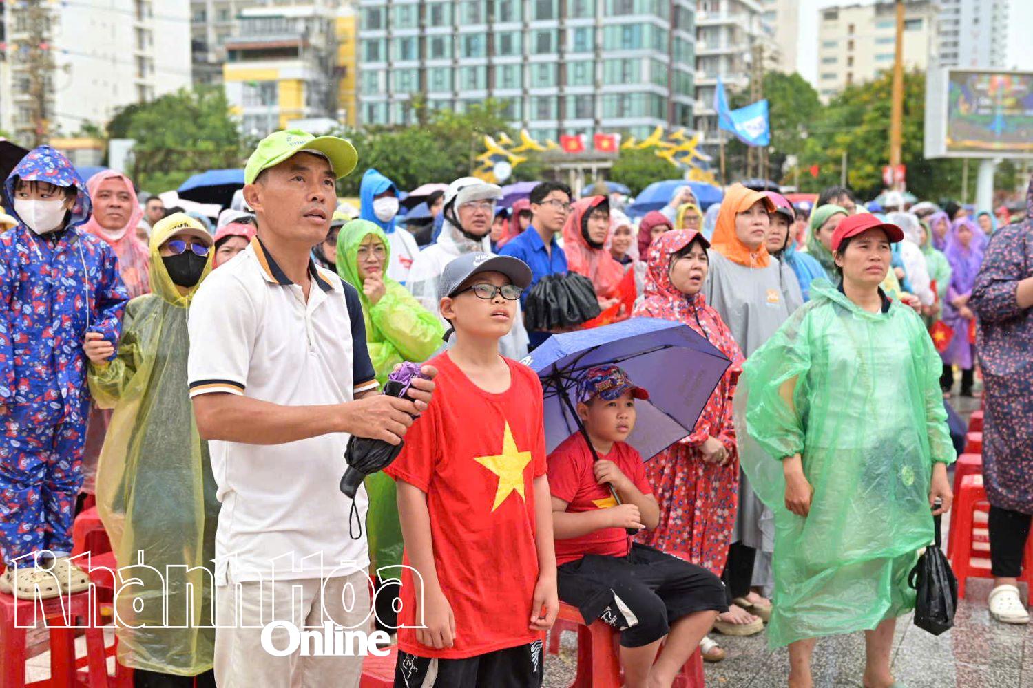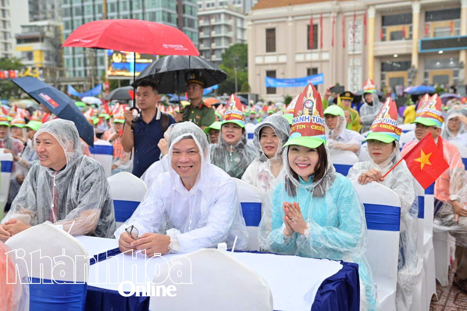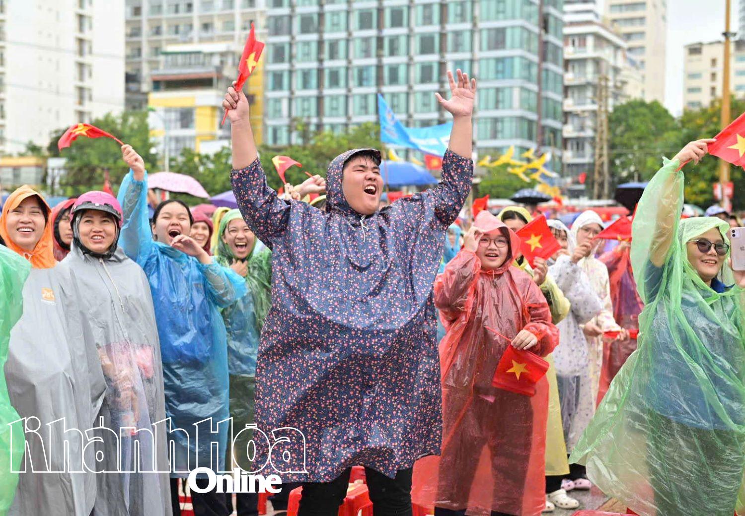 The final round of the 2025 "Road to Olympia" competition is underway at the Vietnam Television studio (Hanoi) on October 26 with live broadcasts connecting four provinces and cities featuring their contestants. At 2-4 Square in Nha Trang Ward, the designated live broadcast location for Khanh Hoa Province, Nguyen Khac Toan, Deputy Secretary of Khanh Hoa Provincial Party Committee and Chairman of the People’s Committee along with leaders of departments and agencies, and more than 4,000 students, teachers and residents are braving the rain to enthusiastically support the contestant Doan Thanh Tung, a student from Le Quy Don High School for the Gifted, South Nha Trang.