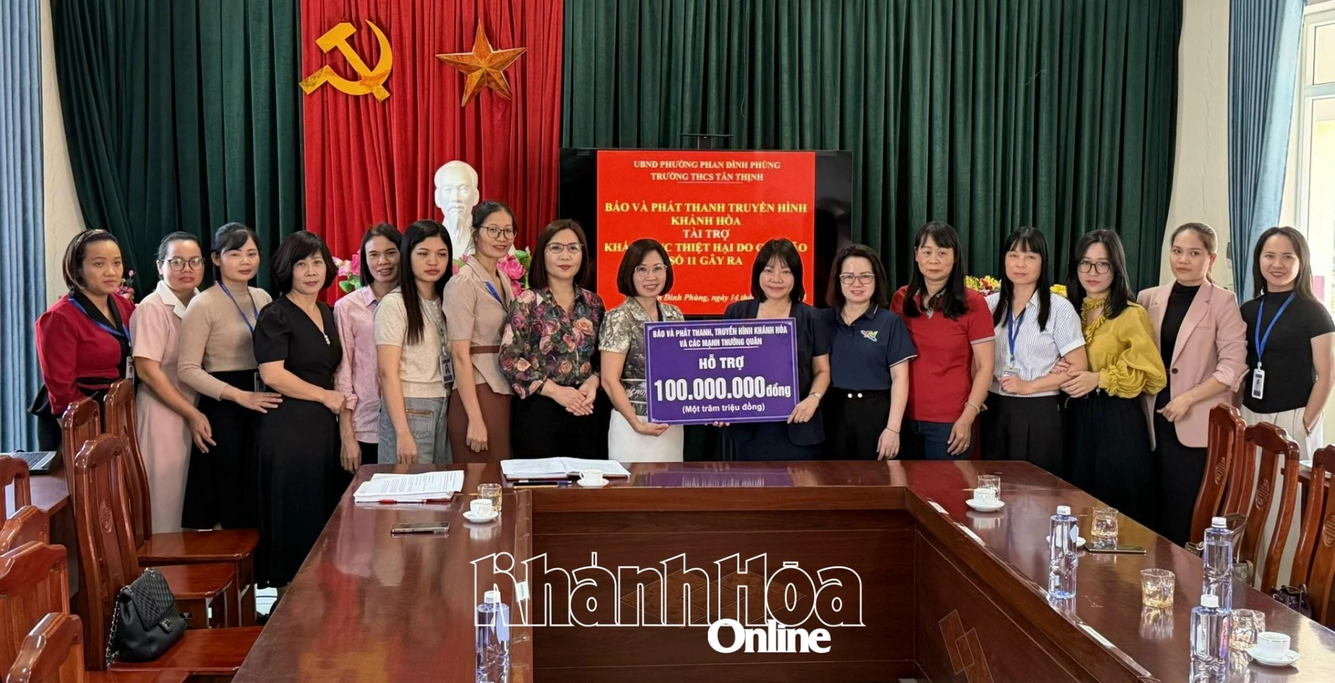 | The working delegation of Khanh Hoa Newspaper, Radio and Television offers financial support to Tan Thinh High School, Phan Dinh Phung Ward. |