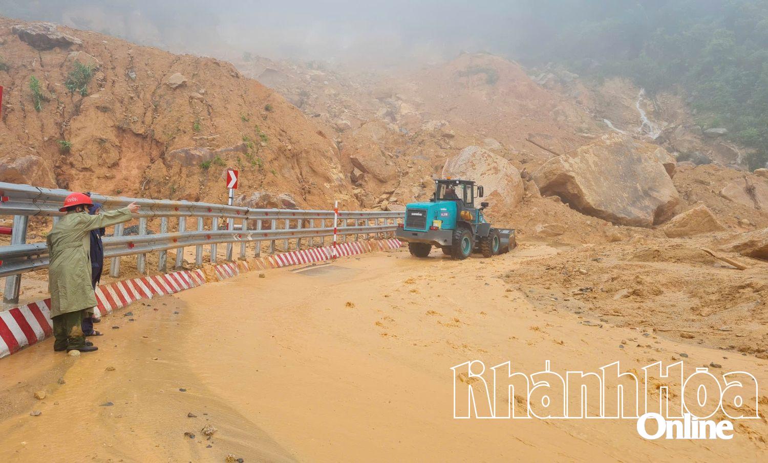 | Authorities are trying to clear the landslide on Khanh Le Pass. |