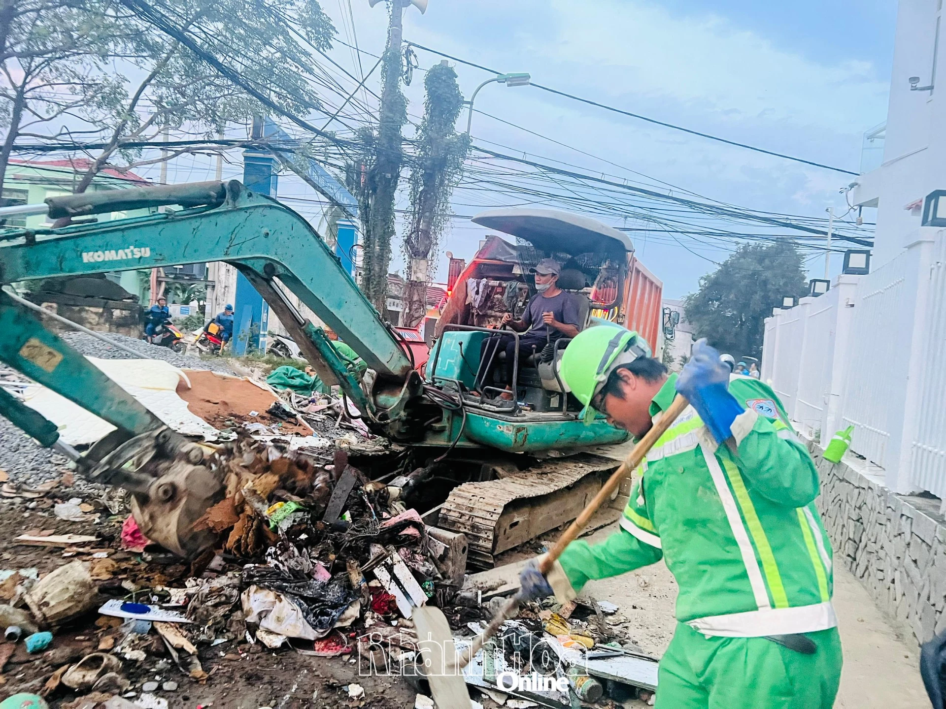 | Workers of Nha Trang Urban Environment Company are urgently clearing garbage in Tay Nha Trang Ward. |
