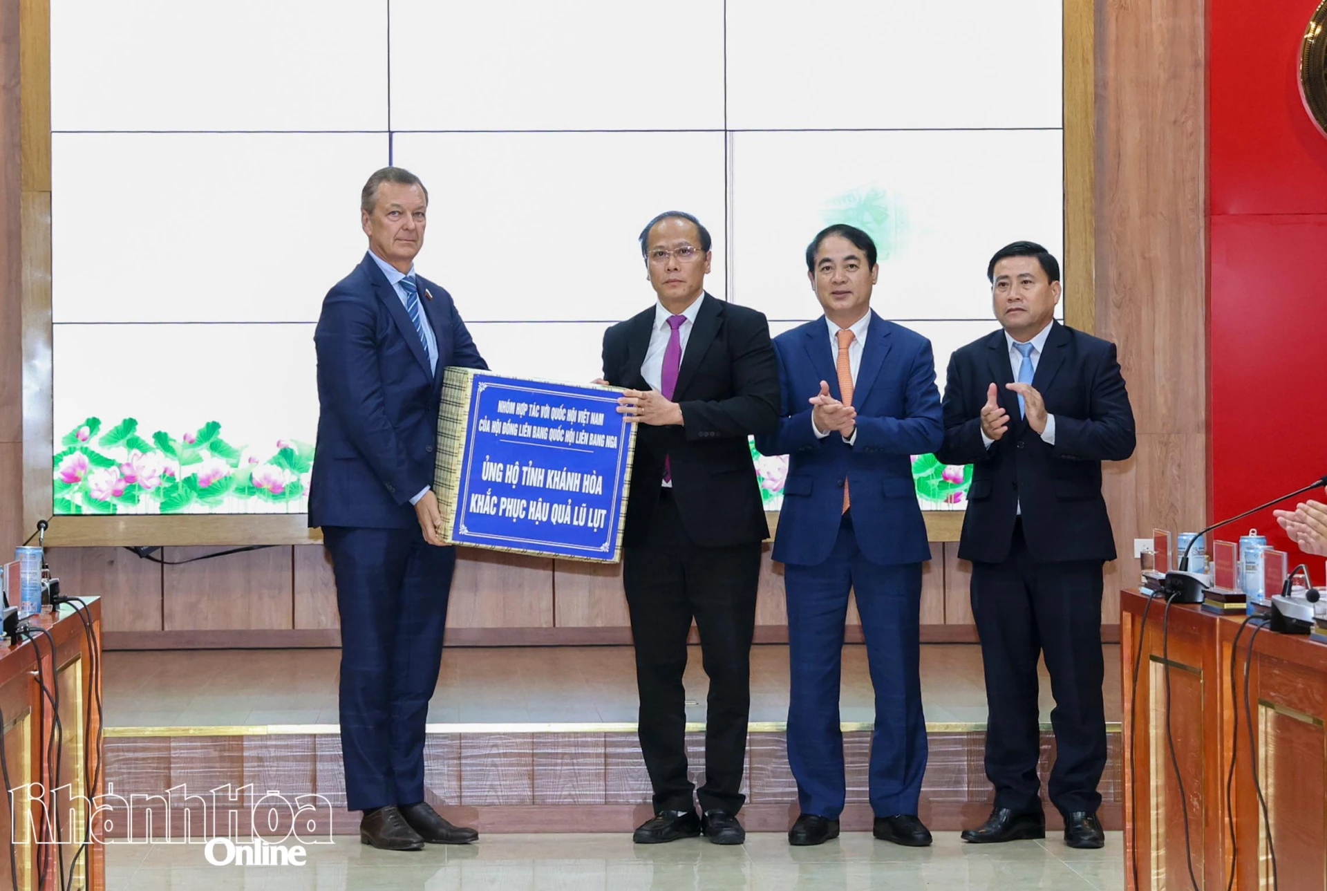 After the working session, members of the Federation Council of the Russian Federal Assembly presented funds to support the government and people of Khanh Hoa to overcome the consequences of floods.