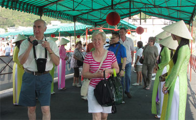 | Tourists of Diamond Princess are welcomed at Nha Trang Port. |