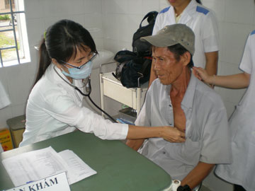 | Medical students give medical check-ups to people in Ninh Tan Commune, Ninh Hoa District. |