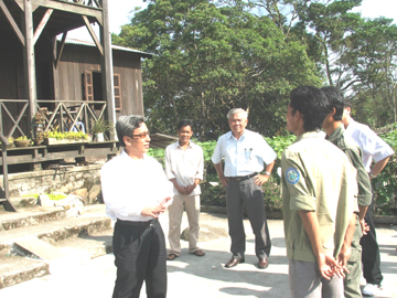 | Khanh Hoa Province’s Vice-chairman Le Xuan Than and leaders of departments survey Dr.Yersin’s house on Mount Hon Ba |