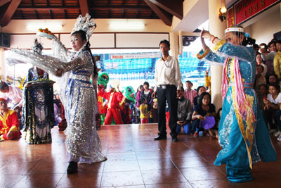 Like other years, he festival lasts three days with a lot of traditional rites along with performances such as lion dance, Van singing and shadow dance. Thousands of people flocked into the festival. They are may be