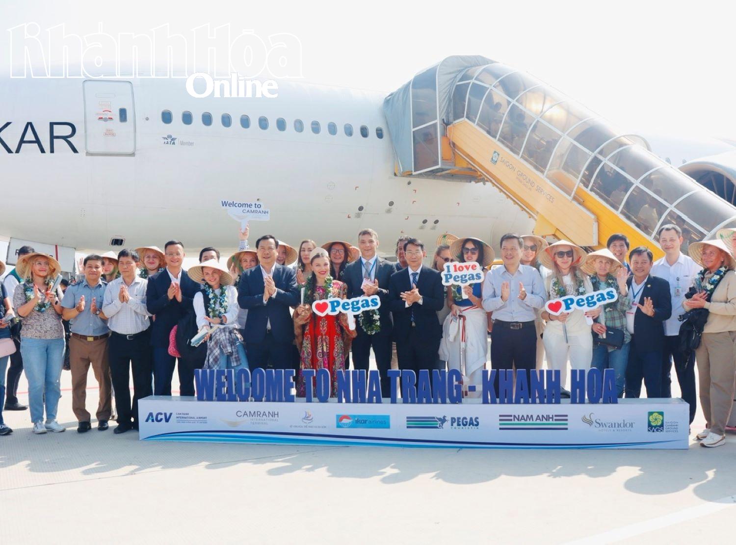 Khanh Hoa Department of Culture, Sports and Tourism coordinated with Cam Ranh International Airport and Pegas Misr Vietnam Travel Company Ltd. to welcome a charter flight of Ikar International Airlines bringing tourists from Khabarovsk (Russia) to Cam Ranh on April 18.