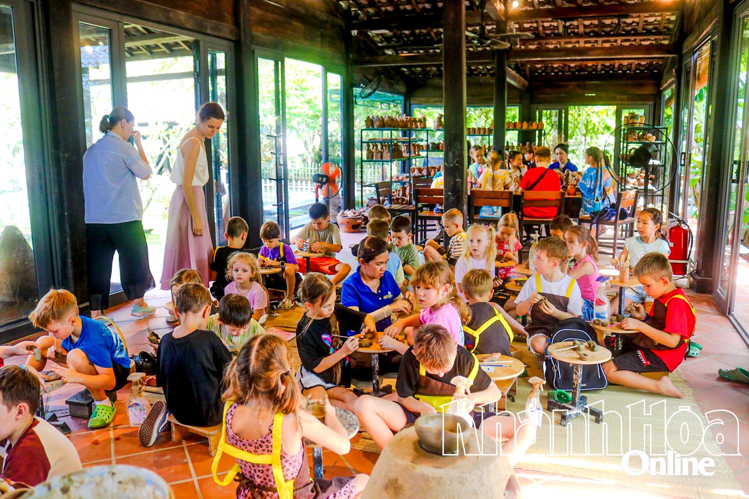 | Kid tourists making pottery at Champa Island Nha Trang |