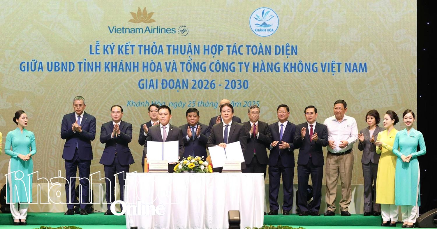 Khanh Hoa Provincial People's Committee and Vietnam Airlines Corporation (Vietnam Airlines) has recently signed a Memorandum of Understanding on comprehensive cooperation for the period 2026 - 2030 within the framework of the 2025 Business and Investor Meeting to strengthen coordination in tourism and aviation development, and investment and trade promotion.