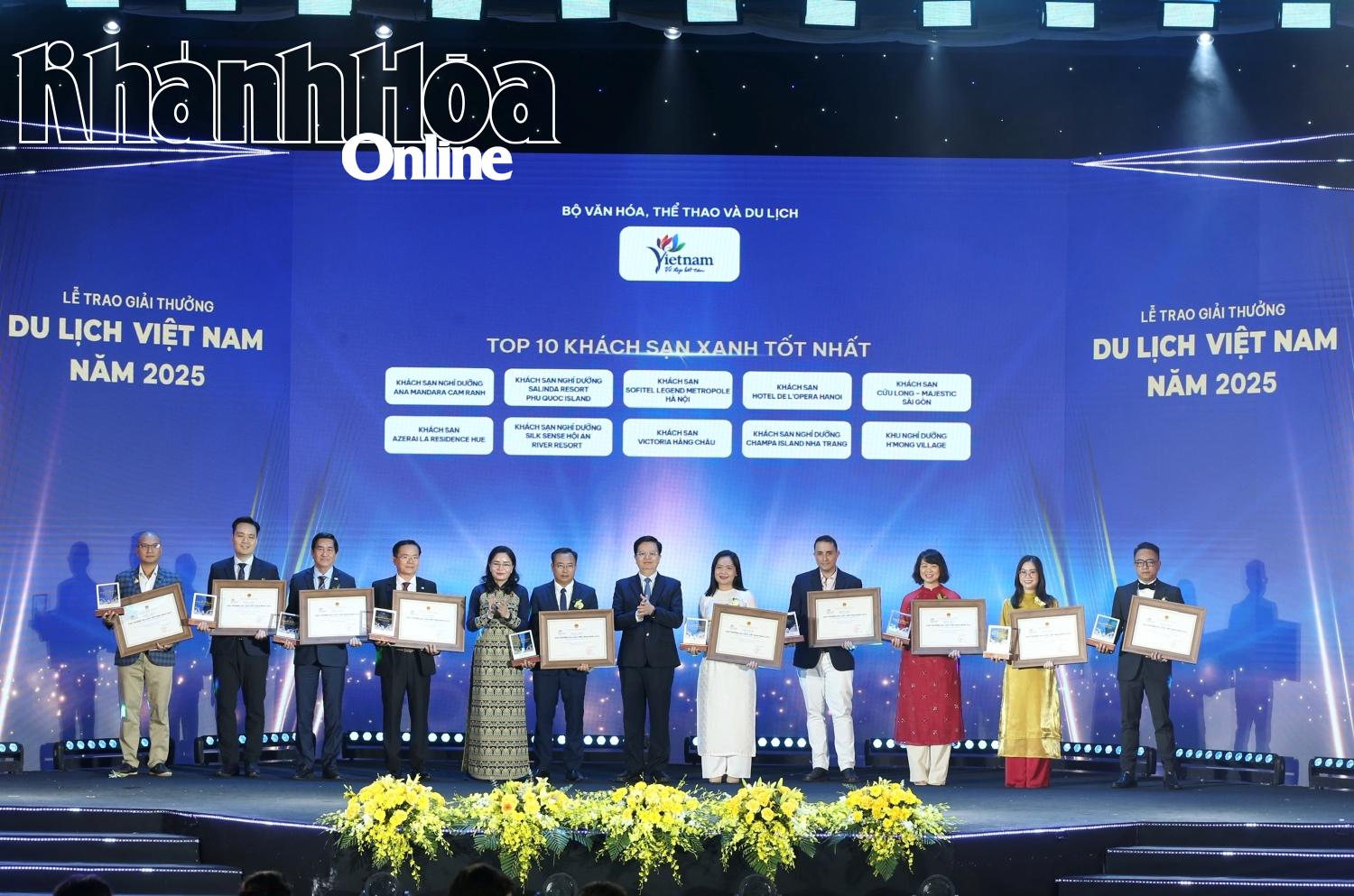 Champa Island Nha Trang Resort Hotel & Spa was honored among the Top 10 Best Green Hotels in Vietnam at the Vietnam Tourism Awards 2025 ceremony held in Hanoi on September 27. The prestigious Tourism Awards featured 113 awards in 11 categories, including tour operators, hotels, transport services, restaurants, spas, community-based tourism destinations, innovative tourism products, media contributions to tourism, tourism training institutions and so on.